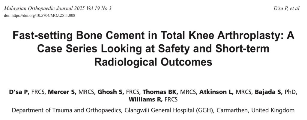 Mr Williams is pleased that his successful series of patients using fast cement in total knee replacements has been published.